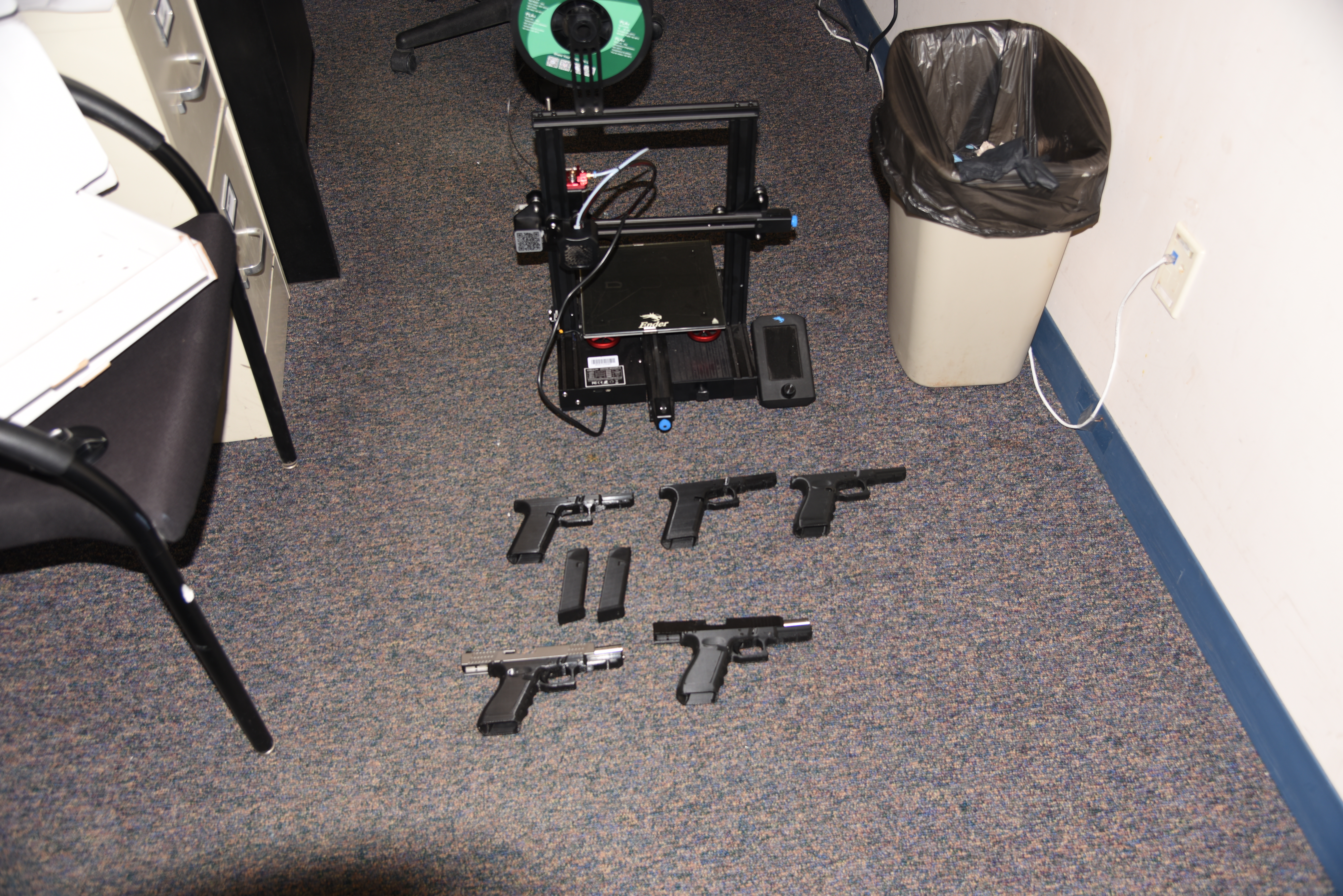 Detectives later responded to the defendant’s home, and after gaining consent to search, seized two complete 3D printed ghost gun copies of a 9mm Glock 17 semi-automatic handgun. Detectives also seized three defective 3D printed Glock 17 frames, a 3D printer, a laptop, and a box of 9mm ammunition.